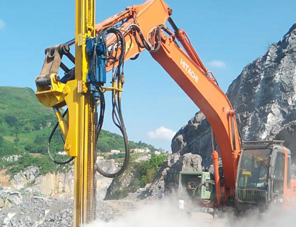億山ES300挖改全液壓鑿巖機,廣泛適用于花崗巖、石灰石、大理石、火山石、青石、玄武巖等硬度較高的堅巖石的各種爆破前鉆孔作業(yè)(硬度F大于6級);可以借助挖機的操作靈活性用于錨桿鉆孔;也遠遠低于一體式鑿巖鉆機的采購價格。具操作簡易,設(shè)計人性化,感觀直接,實現(xiàn)挖掘機一機多用等特性。