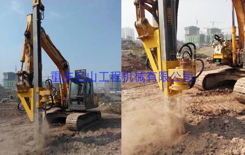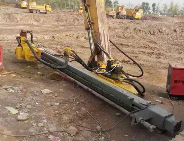 2、前后左右自由伸展,當挖掘機在工地不平坦的情況下, 挖機手可根據位置不同調整鉆桿角度,保持90°垂直鉆孔。