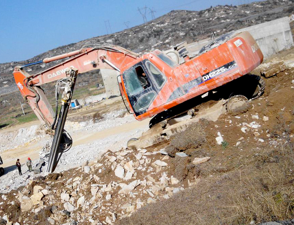 億山ES300挖改全液壓鑿巖機(jī),廣泛適用于花崗巖、石灰石、大理石、火山石、青石、玄武巖等硬度較高的堅(jiān)巖石的各種爆破前鉆孔作業(yè)(硬度F大于6級);可以借助挖機(jī)的操作靈活性用于錨桿鉆孔;也遠(yuǎn)遠(yuǎn)低于一體式鑿巖鉆機(jī)的采購價(jià)格。具操作簡易,設(shè)計(jì)人性化,感觀直接,實(shí)現(xiàn)挖掘機(jī)一機(jī)多用等特性。