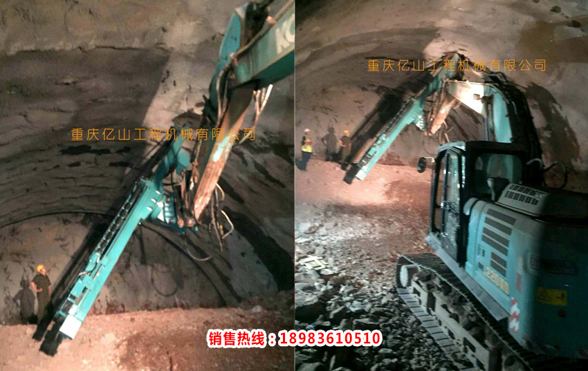 3、作業(yè)半徑擴大化 。因為挖掘機小臂不拆,它的作業(yè)半徑可以延長作業(yè)半徑2-3米,且仰角打孔、豎打孔都可以實現(xiàn)。