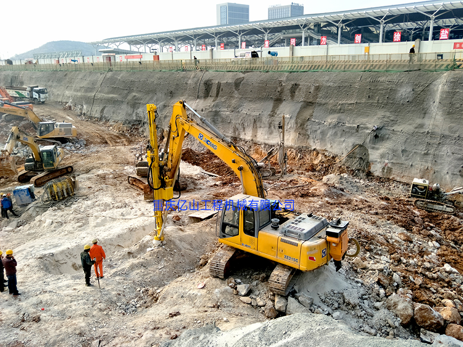江蘇徐州-徐工XE215挖機(jī)改全液壓鑿巖機(jī)(38-54孔4.9米)工地現(xiàn)場(chǎng)
