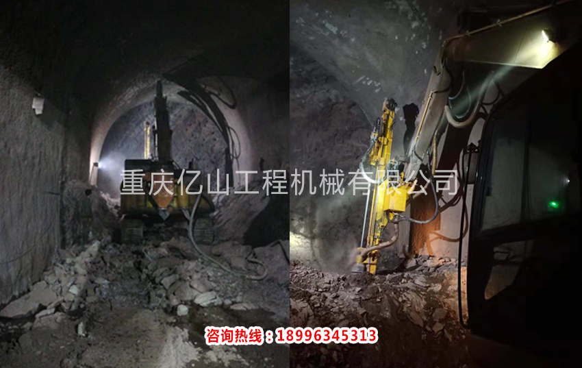 億山ES300挖改全液壓鑿巖機(jī),廣泛適用于花崗巖、石灰石、大理石、火山石、青石、玄武巖等硬度較高的堅(jiān)巖石的各種爆破前鉆孔作業(yè)(硬度F大于6級(jí));可以借助挖機(jī)的操作靈活性用于錨桿鉆孔;也遠(yuǎn)遠(yuǎn)低于一體式鑿巖鉆機(jī)的采購(gòu)價(jià)格。具操作簡(jiǎn)易,設(shè)計(jì)人性化,感觀直接,實(shí)現(xiàn)挖掘機(jī)一機(jī)多用等特性。