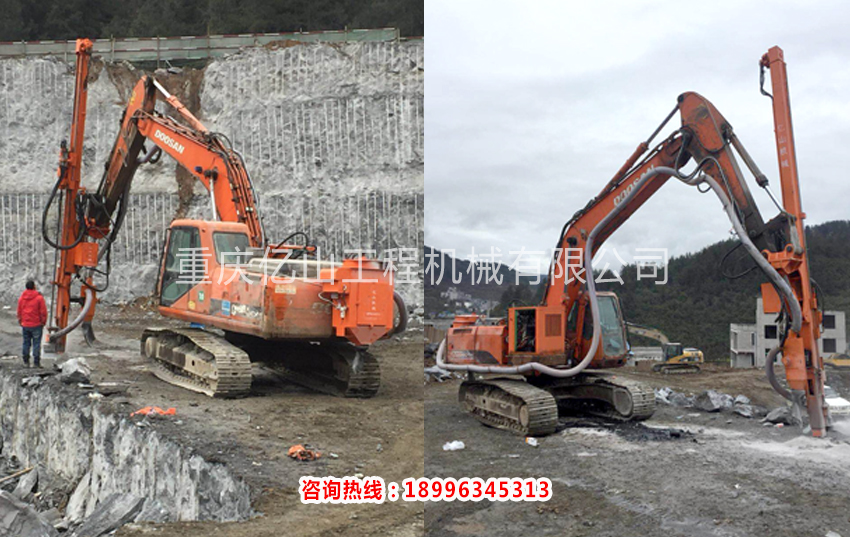 重慶酉陽斗山225挖機改全液壓鑿巖鉆機打80孔5.5米帶吸塵