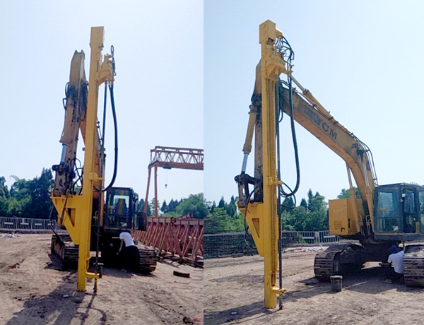 2、前后左右自由伸展,當挖掘機在工地不平坦的情況下, 挖機手可根據位置不同調整鉆桿角度,保持90°垂直鉆孔。