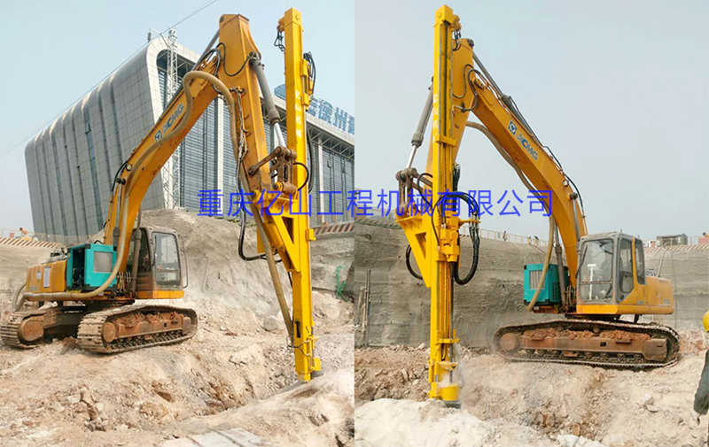 鑿巖鉆機是新式的挖改鉆機設備,效率很高,由液壓總成,鉆臂總成,空壓機總成(挖機一體),動力機頭,釬桿釬頭(耗材)幾大部件構成,在工作原理上看起來類似切削鉆機,但是在動力機頭在液壓要求和液壓動力上有本質區(qū)別,所需的鉆頭和釬頭也是不同的工作原理。鉆孔孔徑42-90mm(孔徑大小決定機頭的選擇),適用于高硬度石層,對一般的花崗石,石英石都能達到很好的效果,在一般的硬石上,打孔效率可達2-4米/分鐘,鉆臂軌道長度為3米或6米,打孔深度為6米。液壓總成提供液壓馬達的扭矩,空壓總成完成排渣工作。對液壓動力的要求較高,推薦改裝挖機低噸位10噸。