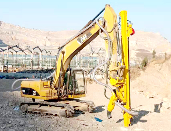 億山挖改潛孔鉆機各系列產品,廣泛適用于花崗巖、石灰石、大理石、火山石、青石、玄武巖、頁巖、砂巖、風化巖、泥巖等所有巖石的各種爆破前鉆孔作業;借助挖機的操作靈活性也可用于錨桿鉆孔以及孔徑較大的光伏孔;使用效率高于傳統的分體式潛孔鉆機。具操作簡易,設計人性化,感觀直接,實現挖掘機一機多用等特性。