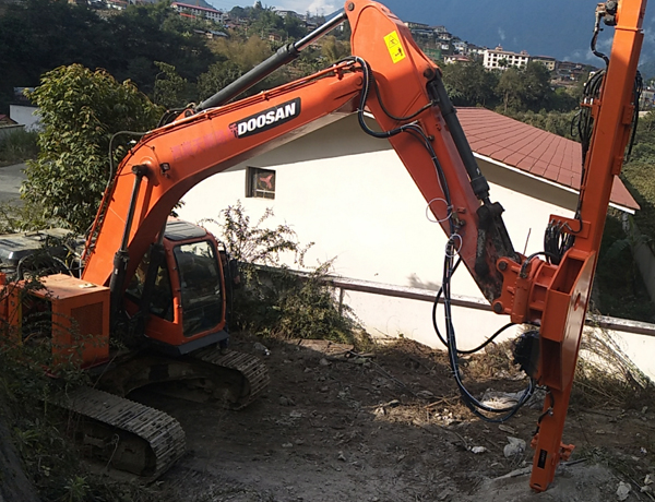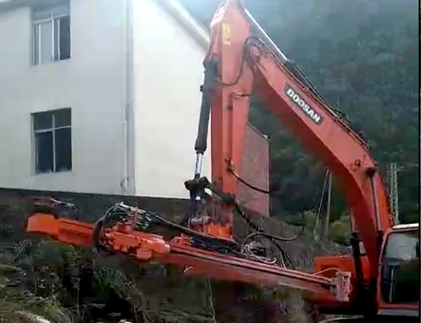 2、前后左右自由伸展,當(dāng)挖掘機(jī)在工地不平坦的情況下, 挖機(jī)手可根據(jù)位置不同調(diào)整鉆桿角度,保持90°垂直鉆孔。