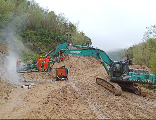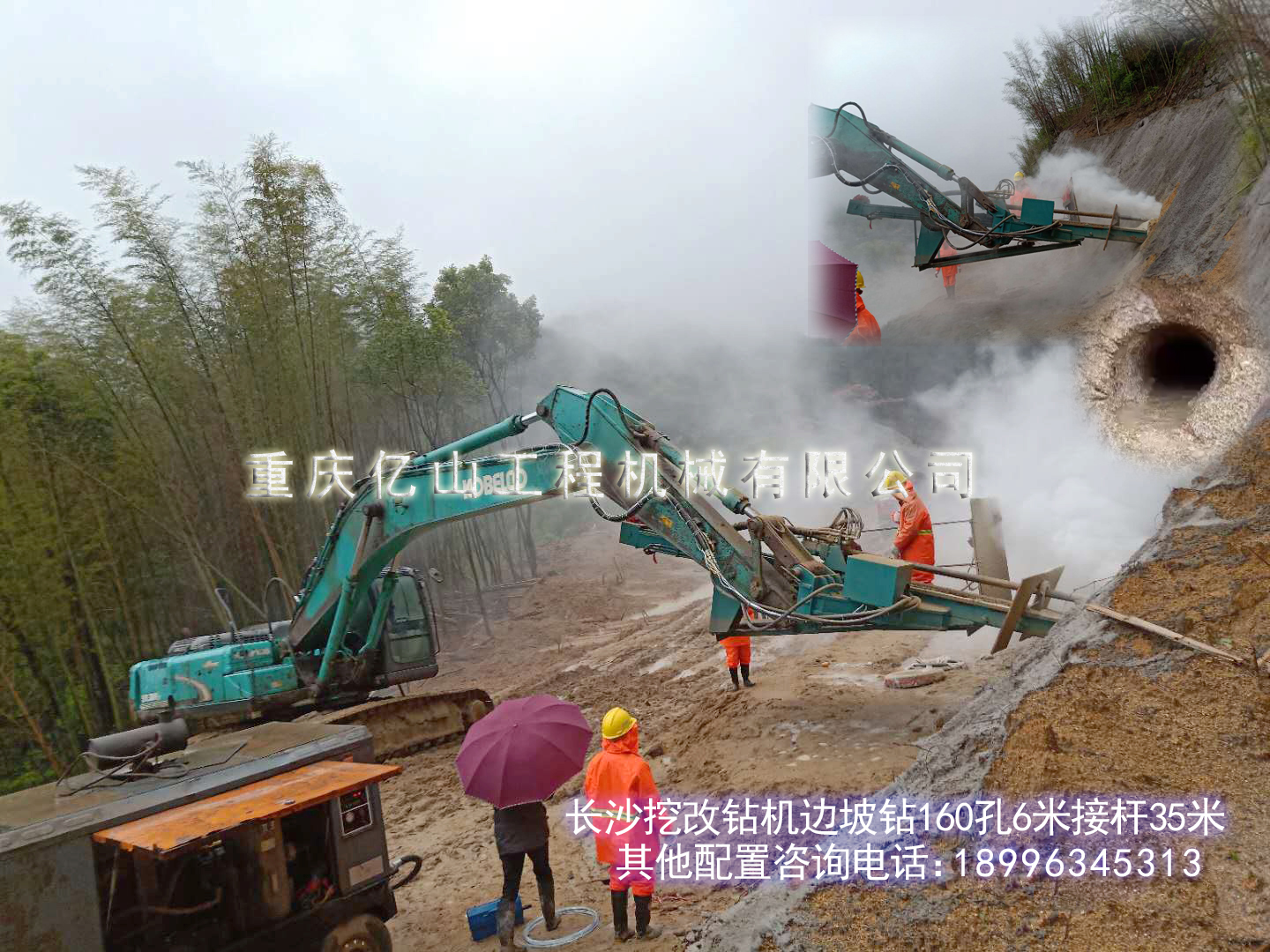 億山挖改潛孔鉆機各系列產品,廣泛適用于花崗巖、石灰石、大理石、火山石、青石、玄武巖、頁巖、砂巖、風化巖、泥巖等所有巖石的各種爆破前鉆孔作業;借助挖機的操作靈活性也可用于錨桿鉆孔以及孔徑較大的光伏孔;使用效率高于傳統的分體式潛孔鉆機。具操作簡易,設計人性化,感觀直接,實現挖掘機一機多用等特性。