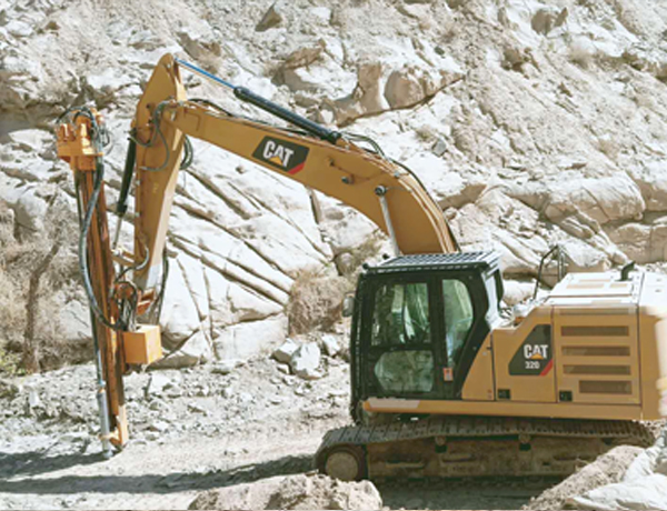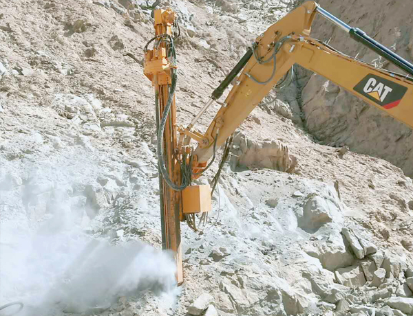 億山挖改潛孔鉆機各系列產品,廣泛適用于花崗巖、石灰石、大理石、火山石、青石、玄武巖、頁巖、砂巖、風化巖、泥巖等所有巖石的各種爆破前鉆孔作業;借助挖機的操作靈活性也可用于錨桿鉆孔以及孔徑較大的光伏孔;使用效率高于傳統的分體式潛孔鉆機。具操作簡易,設計人性化,感觀直接,實現挖掘機一機多用等特性。