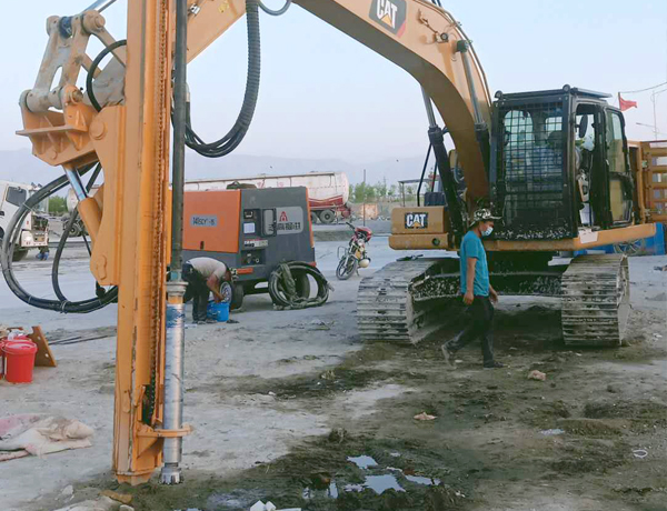 4、大功率空壓機,既可以單獨放置接氣管;也可以安裝于挖機的配重位置,與挖機鉆機自成一體,使用更為方便快捷。
