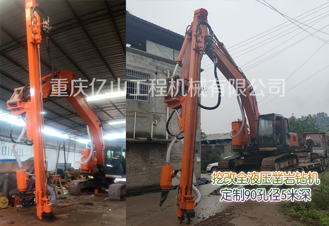 涪陵石柱--日立240挖機改裝鑿巖機定制90孔5米深