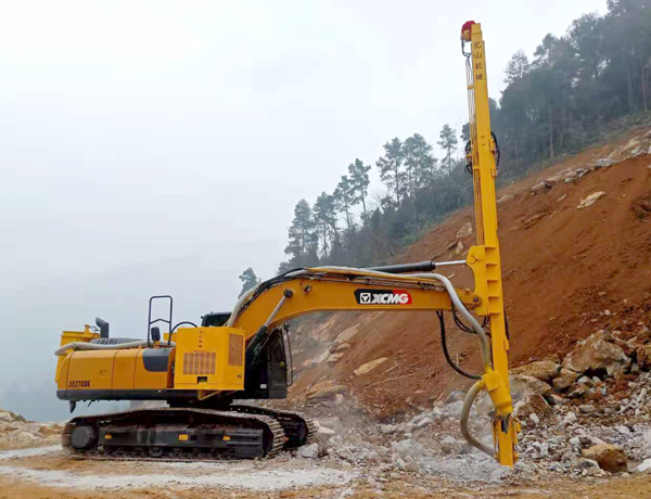 重慶南川--徐工270挖機定制液壓鑿巖機(直徑90mm、成孔深度6.4米)