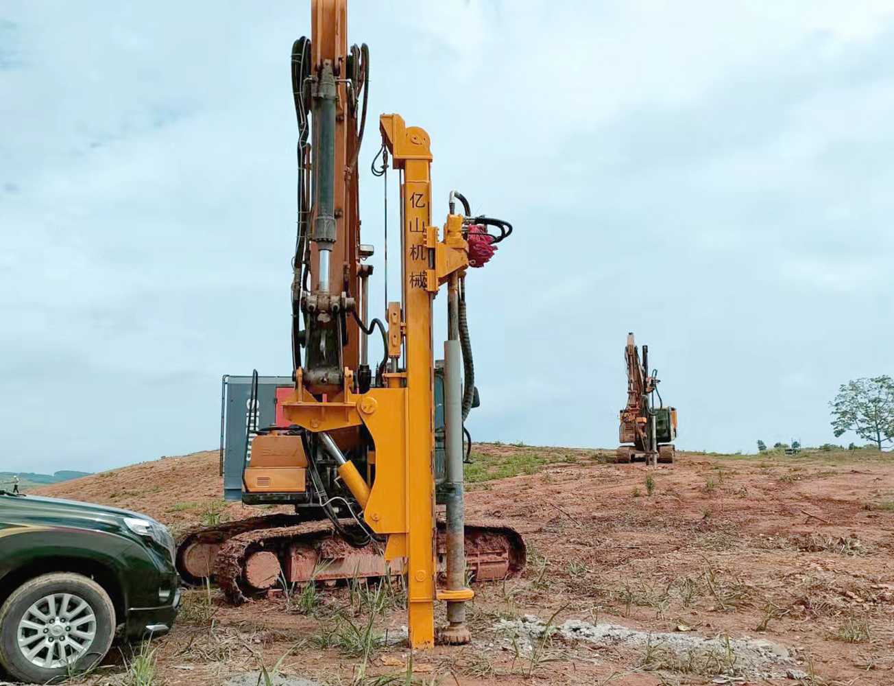 億山挖改潛孔鉆機各系列產品,廣泛適用于花崗巖、石灰石、大理石、火山石、青石、玄武巖、頁巖、砂巖、風化巖、泥巖等所有巖石的各種爆破前鉆孔作業;借助挖機的操作靈活性也可用于錨桿鉆孔以及孔徑較大的光伏孔;使用效率高于傳統的分體式潛孔鉆機。具操作簡易,設計人性化,感觀直接,實現挖掘機一機多用等特性。