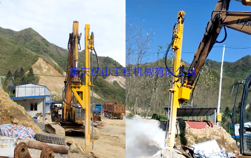 億山ES300挖改全液壓鑿巖機,廣泛適用于花崗巖、石灰石、大理石、火山石、青石、玄武巖等硬度較高的堅巖石的各種爆破前鉆孔作業(硬度F大于6級);可以借助挖機的操作靈活性用于錨桿鉆孔;也遠遠低于一體式鑿巖鉆機的采購價格。具操作簡易,設計人性化,感觀直接,實現挖掘機一機多用等特性。