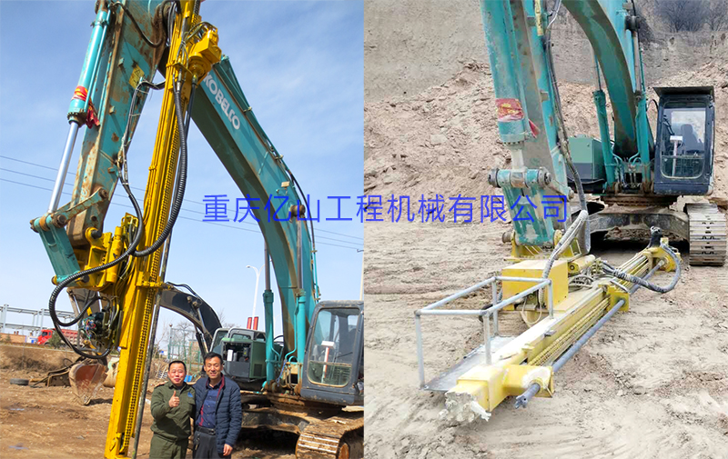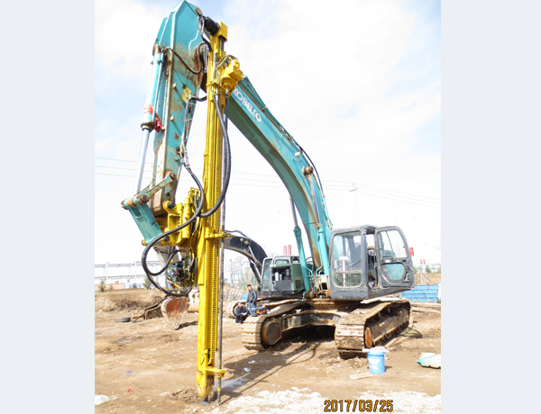 2、前后左右自由伸展,當挖掘機在工地不平坦的情況下, 挖機手可根據位置不同調整鉆桿角度,保持90°垂直鉆孔。