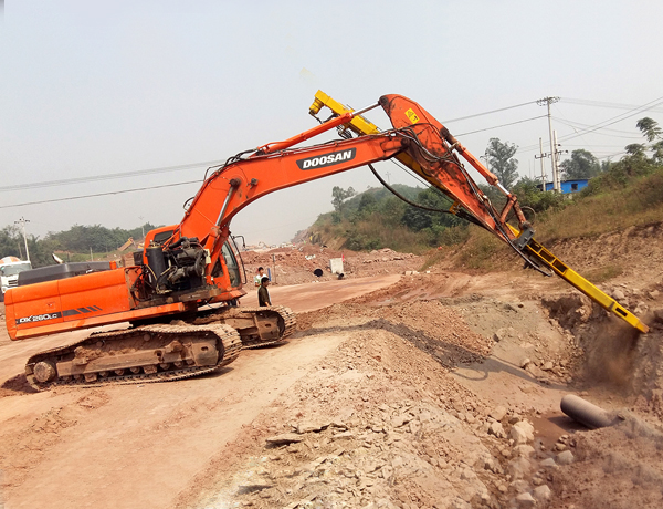 1、安裝拆卸方便。挖掘機小臂不用拆卸,不影響挖掘機自身功能,直接類似掛破碎錘一樣,管路系統都可以共用,真正實現一機五用并互換:挖土、破碎錘、切削鉆、鑿巖機、潛孔鉆。拆卸時間和換斗時差不多,約10-20分鐘。