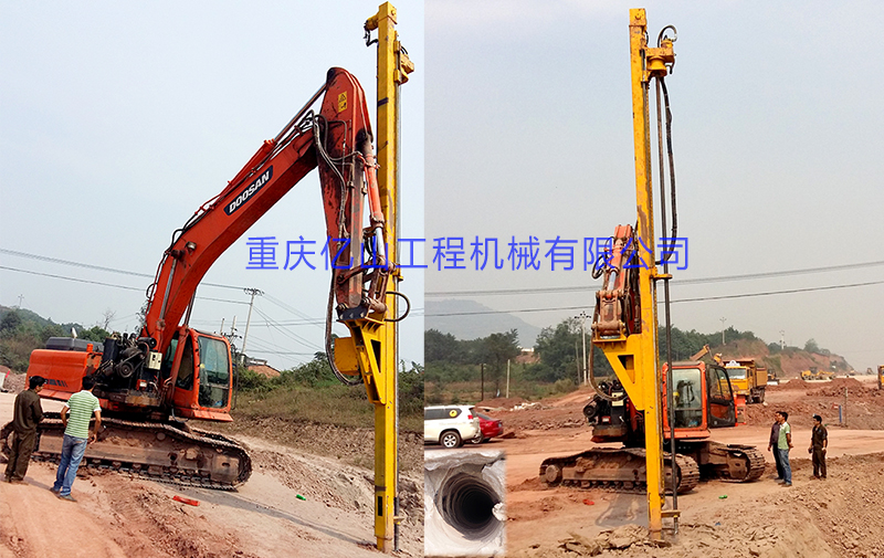 2、前后左右自由伸展,當挖掘機在工地不平坦的情況下, 挖機手可根據位置不同調整鉆桿角度,保持90°垂直鉆孔。
